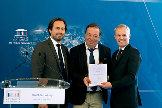 Mercredi 18 juillet 2018, Christian Hutin et Grégory Besson-Moreau, respectivement président et rapporteur de la commission d’enquête chargée de tirer les enseignements de l’affaire Lactalis, ont remis leur rapport au président de l'Assemblée, François de Rugy.